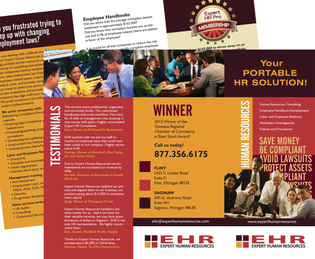 TD&A! creates attention-getting, professional brochures for restaurant catering, attorneys, realtors, financial planners, contractors and specialty companies in Hartland, Grand Blanc, Metro Detroit, Fenton and all over Michigan.
